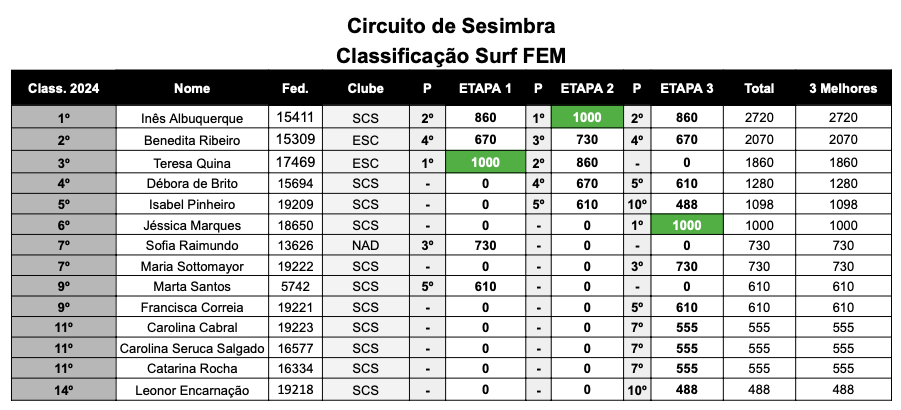 Resultados da 3ª Etapa do Circuito de Sesimbra 2024