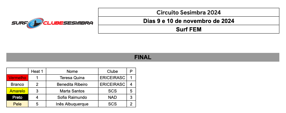 Resultados do 1º dia do Circuito de Sesimbra 2024