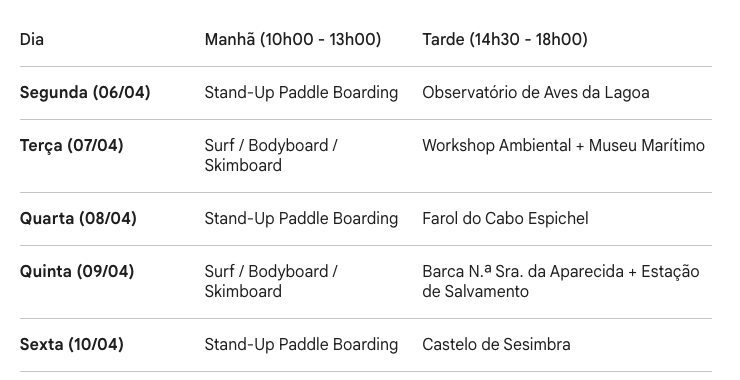 Programa: Sesimbra Easter Week - Férias em Movimento